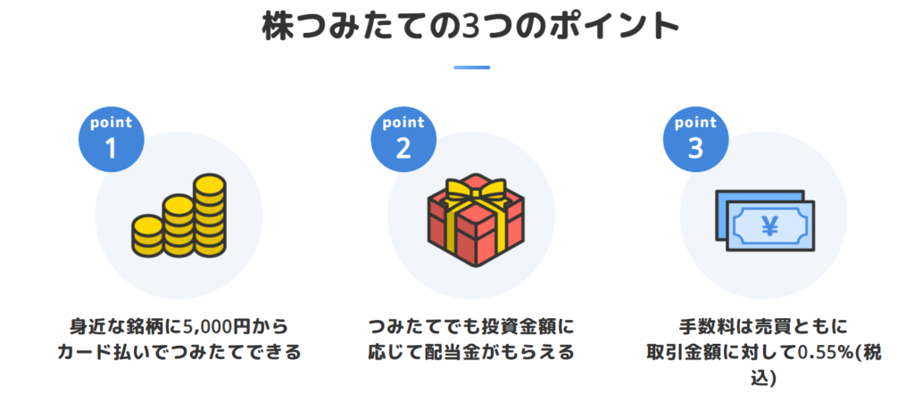 となります。1例として、6万円のカード積立の場合には5万円までは1.1%の550円相当、残りの1万円は0.6%で60円相当の合わせて610円が還元されることになります。マックスの10万円の積立時はポイントの還元率は0.73%ということになってきます。5万円以下なら業界最高水準の1.1%還元、そして10万円でも0.73%というのはなかなかの高還元なのではないでしょうかね。