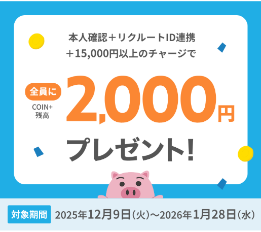 - 期間中に以下の条件を満たした方に、COIN+残高2,000円をプレゼントします。