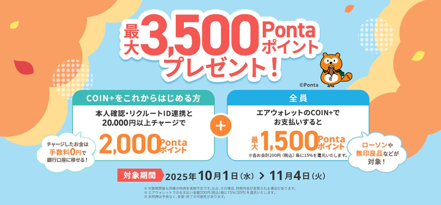 です。これで最大3,500円相当のPontaポイントがもらえます!めちゃくちゃ簡単です。まずは、下記よりCOIN+のアプリをダウンロードしましょう。