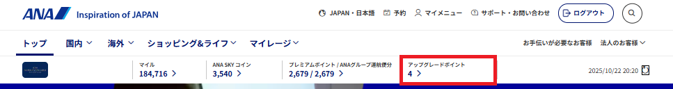 ANAのアップグレードポイントが終了となります。