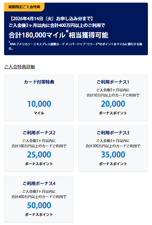 - アメックスの入会キャンペーン(180,000マイル)