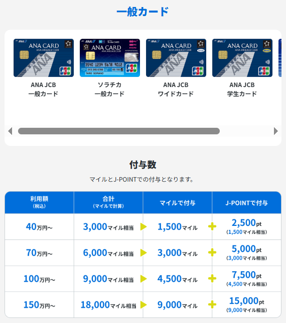 - JCB主催キャンペーン:150万円利用で15,000マイル+9,000ボーナスマイル+13,500ボーナスマイル