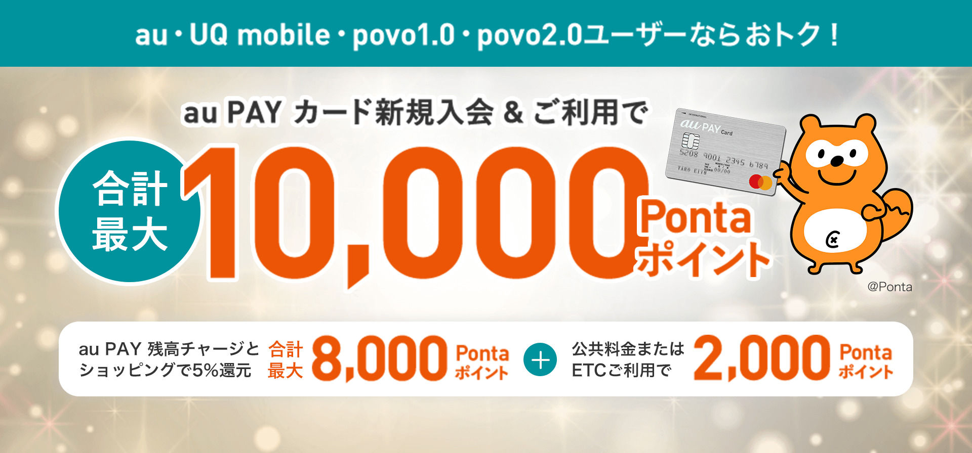 au PAY ゴールドカード*1なら、合計最大20,000Pontaポイントプレゼント!実施期間