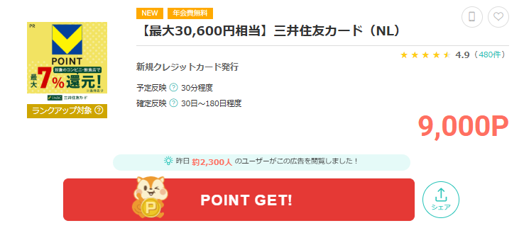 もし2枚持ちのために別のポイントサイトに登録しようと思う方がいたら、下記の入会キャンペーンをご利用ください!