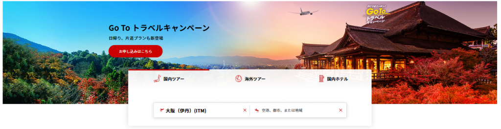- 片道航空券+宿泊でGoToトラベルキャンペーン50%オフ