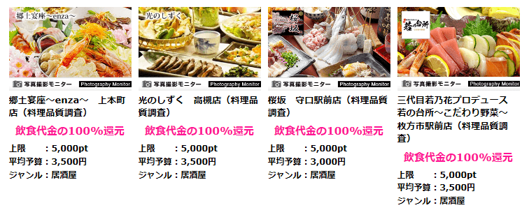 色んな場面で、このモニターを利用することで、大きな節約どころか、飲み会の幹事をして、お小遣い稼ぎをするチャンスにもなると思います。
