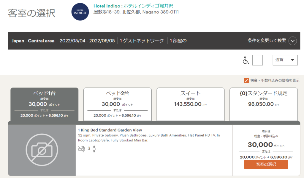 そして、、先ほどもちらっと書きましたが、IHGのポイント利用の難しい点は、ポイント宿泊のポイント数が変動制という点です。数日後に確認すると、ポイントが変動していることもあるんです。このあたりは非常に難しい選択になりますね。