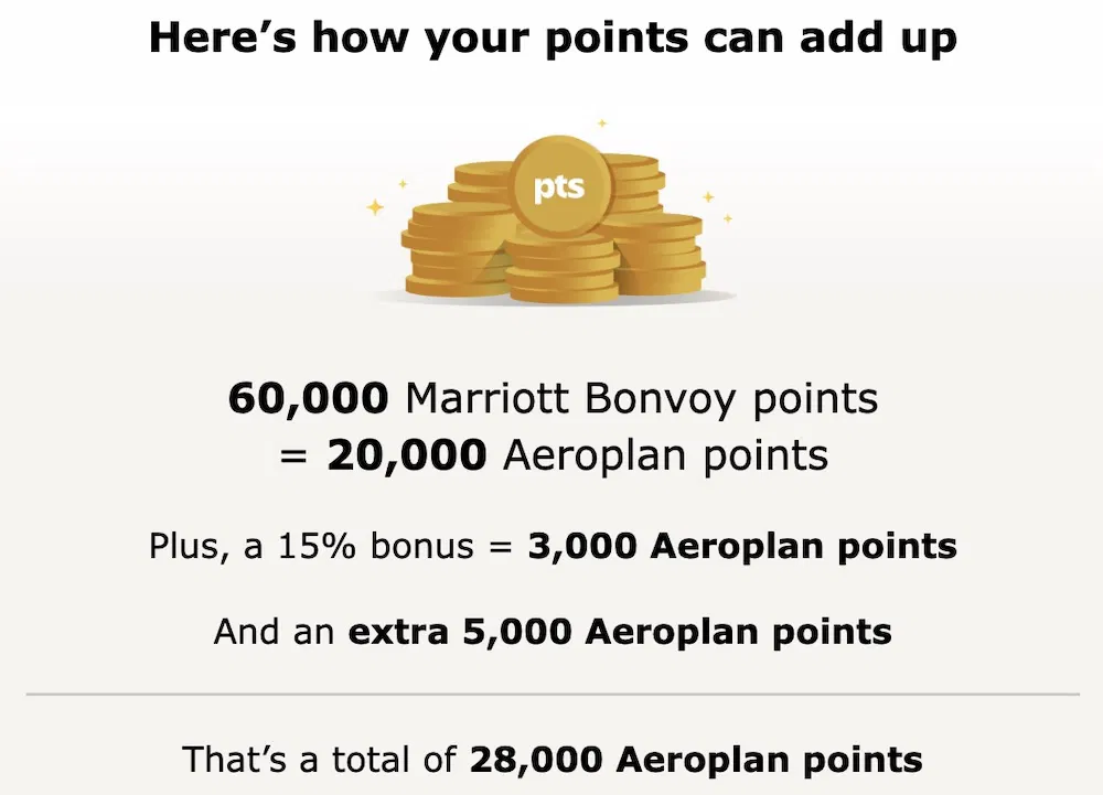 - キャンペーン内容:マリオットポイントからAeroplanへのマイル移行で基本マイルが15%増