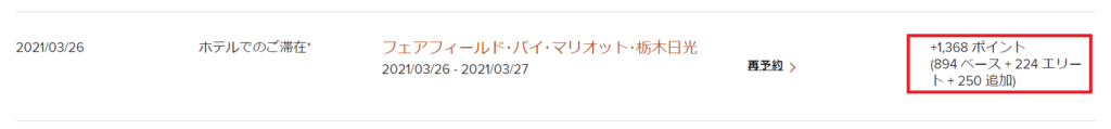 上記で224エリートと書かれた部分がありますが、これはベースポイントである894ポイントの25%に相当するゴールドエリートのボーナスポイントですね。これが、宿泊の度に毎回毎回付与されるわけです。特に、高額なホテルに数泊するような場合には、1回の宿泊が20万円オーバーにもなり、ベースポイントが2万ポイントに達するようなケースもあるでしょう。そんなときには、25%ボーナスの効果は絶大で、5,000ポイントものボーナスが獲得できたりします。