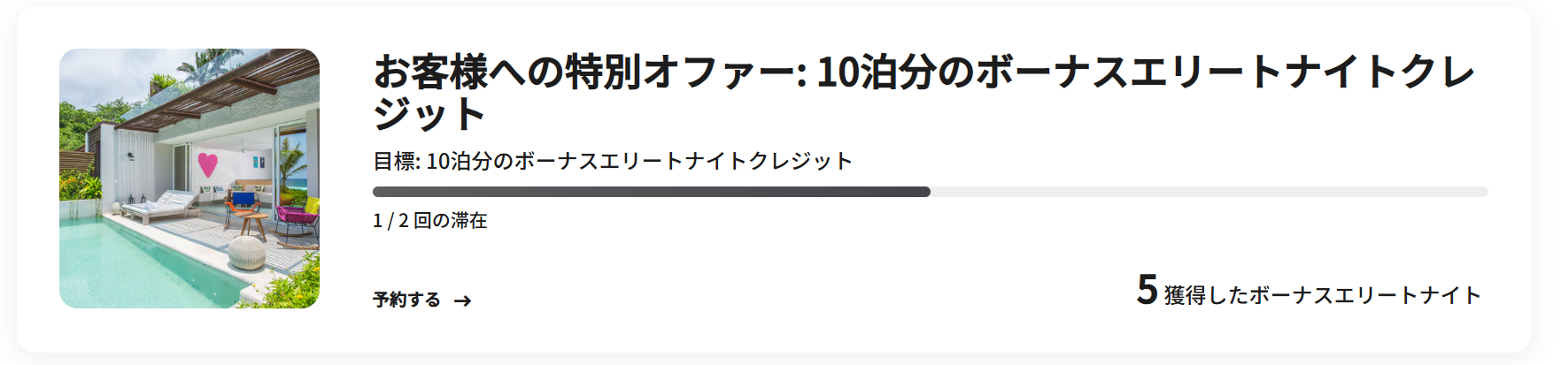 - 2泊→通常実績1泊、プロモーションボーナス2泊