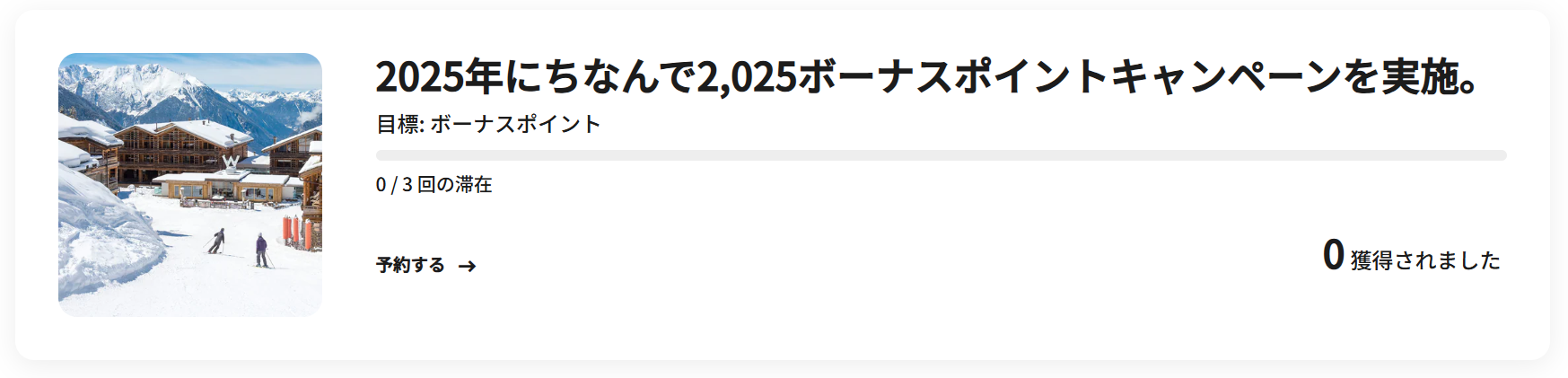 ご滞在ごとに最大3回まで2,025ボーナスポイントを獲得できます。*