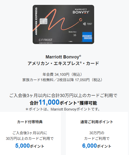 - 年会費はできるだけ安く、マリオットポイントが貯まるクレジットカードを保有したい:マリオットアメックス