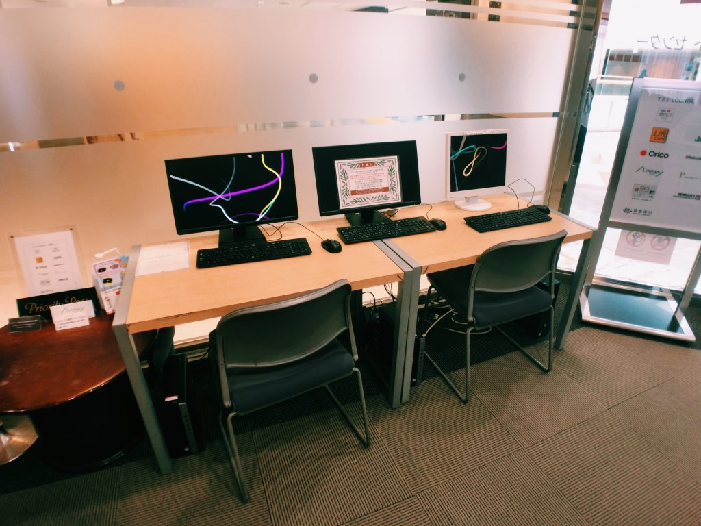 「ビジネス&トラベルサポートセンター」という名称がついているからどんなところかなと思ったら、受付の前にパソコンが3台置かれているんですね。これで「ビジネス」という名称なのでしょう。