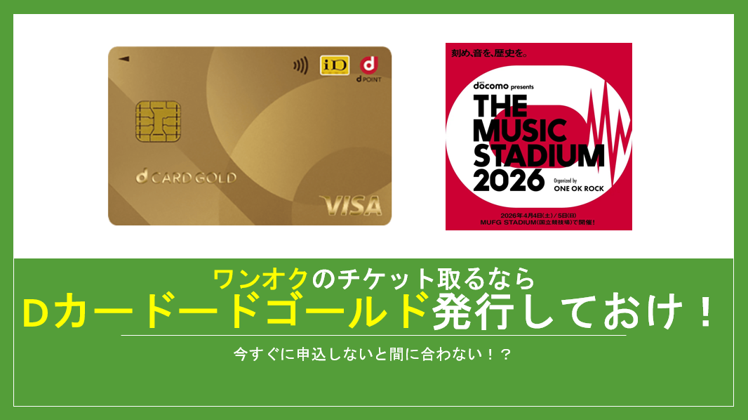 ということで、ワンオクのチケット、「docomo presents THE MUSIC STADIUM 2026 organized by ONE OK ROCK」のチケットが欲しい!!という方は、今すぐにdカードゴールドを発行しておくことをオススメします!!!