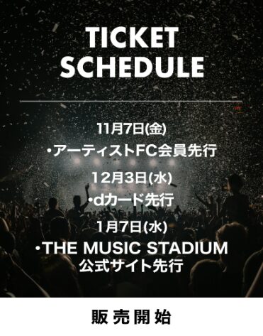 - 11/7 18:00~11/25 23:59:各ファンクラブ会員先行申込(抽選)