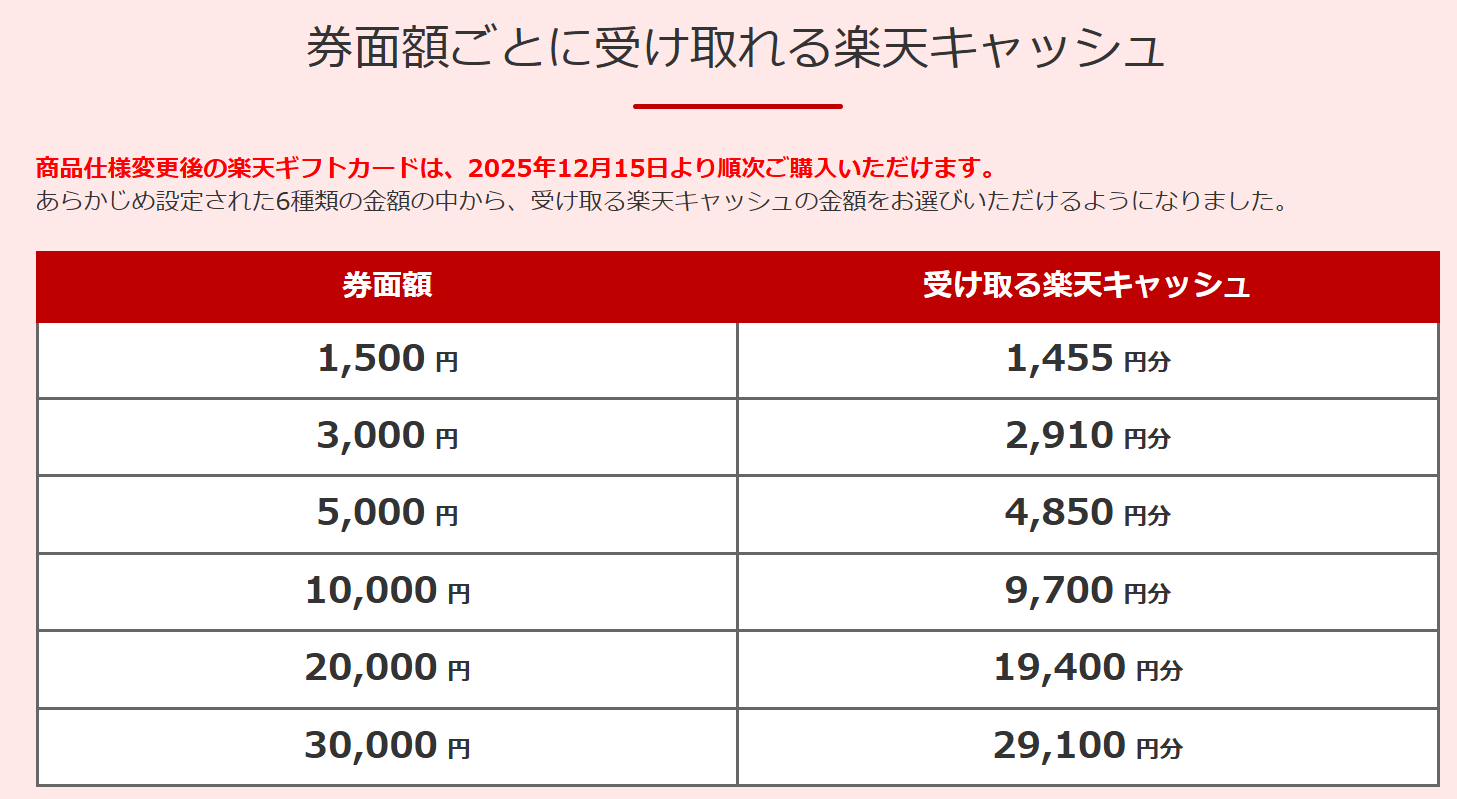 【悲報すぎ】楽天ギフトカードが仕様変更で額面での販売ではなくなる。買った瞬間に購入金額の3%もお金が減ってしまうというクソ仕様へ。