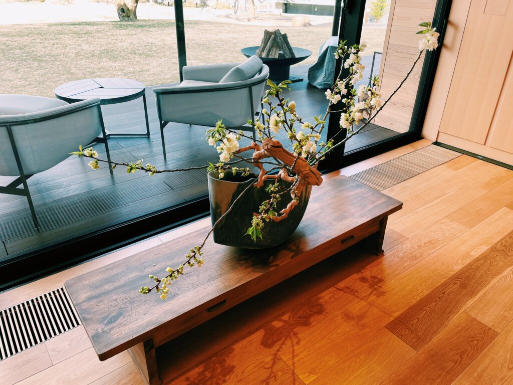 この和風の棚が、また絵になる。普通は、扉を閉めずに中身が見えたらダサいじゃないですか。が、中身がすべて見える状態にしてもオシャレ。恐るべし、ザ・リッツ・カールトン日光。