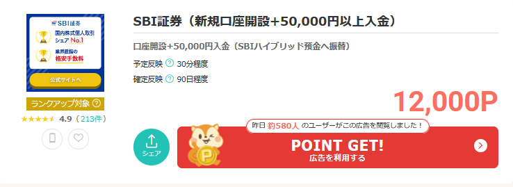 (注)ポイント数は日々変動することがあります。申込時のポイントが適用されるので、ご確認の上、ご注意ください。