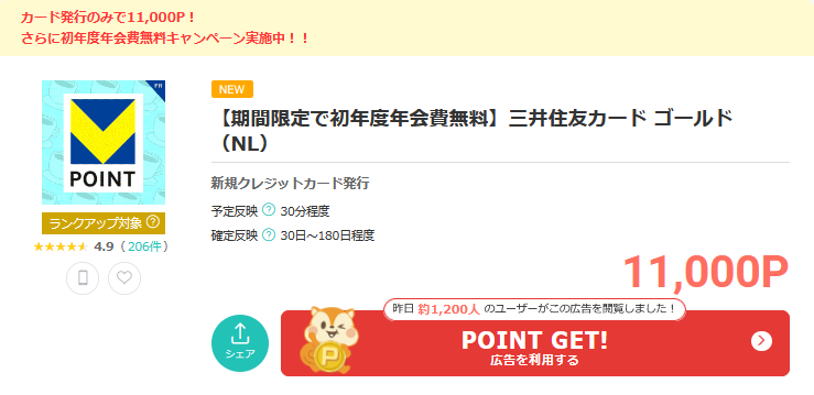 - 1ポイント=1円でカード利用額に充当