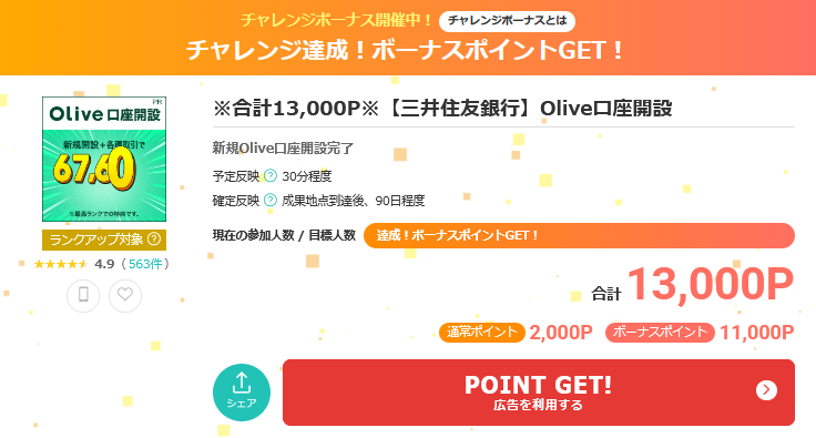 どれも9,000P~13,000P(9,000円相当~13,000円相当)というとんでもないお小遣いがもらえます!!!!ということで、開設の際にはポイントサイトを経由することだけは絶対に忘れないでくださいね!!!
