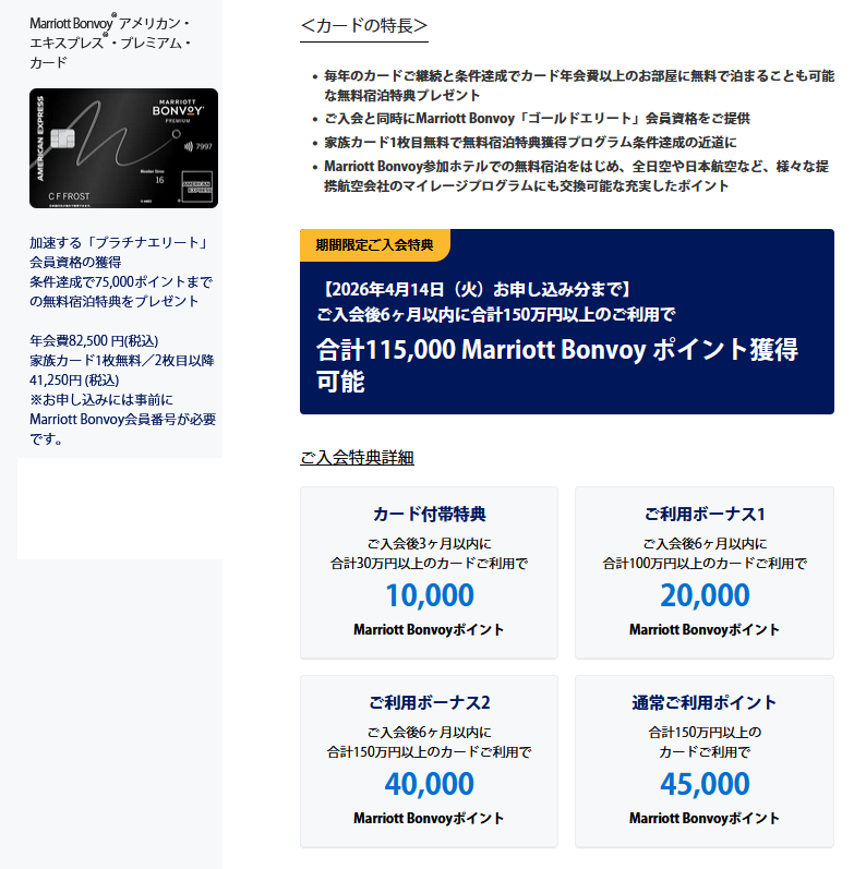 マリオットアメックスプレミアムの申込ページをのぞきに行くと、